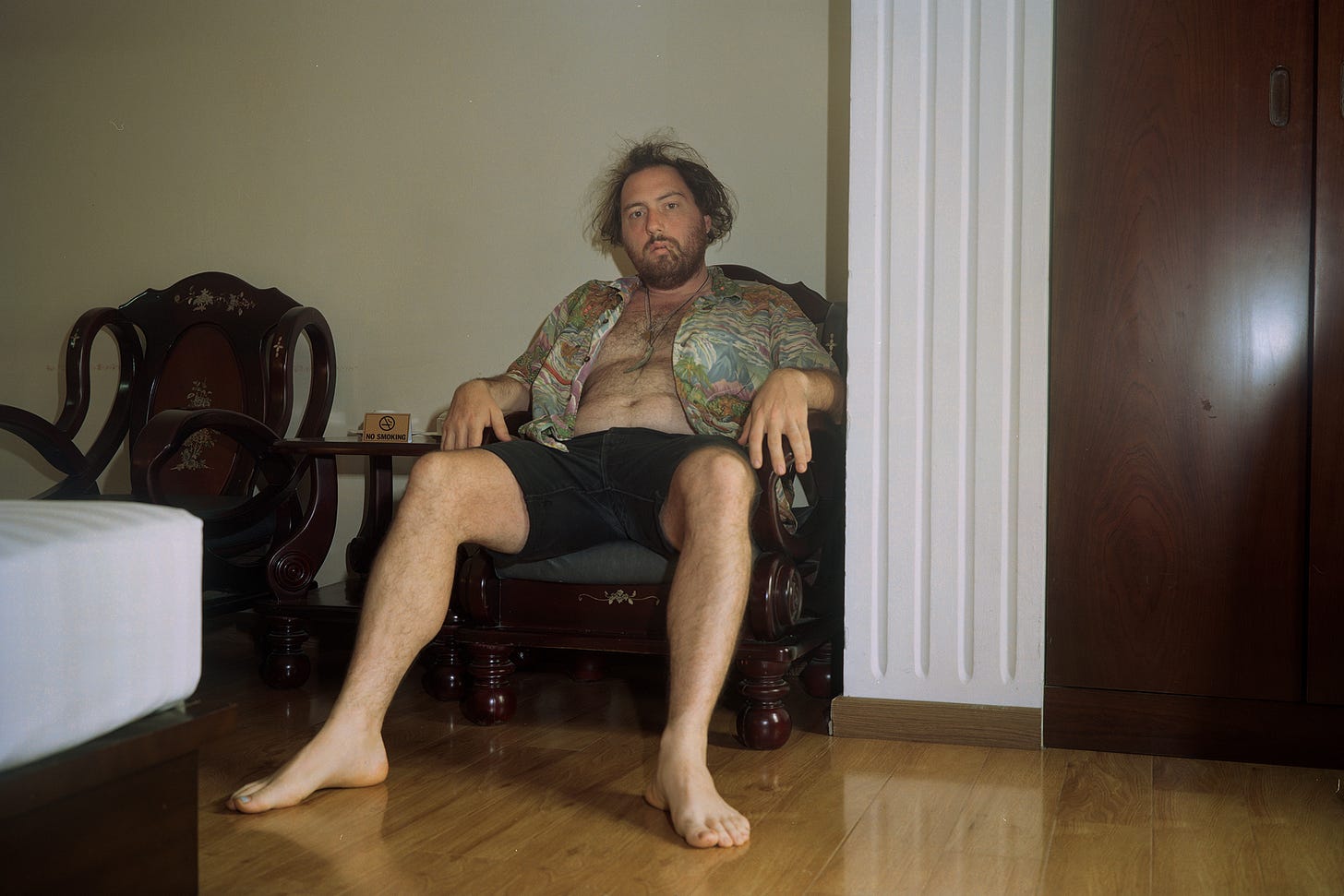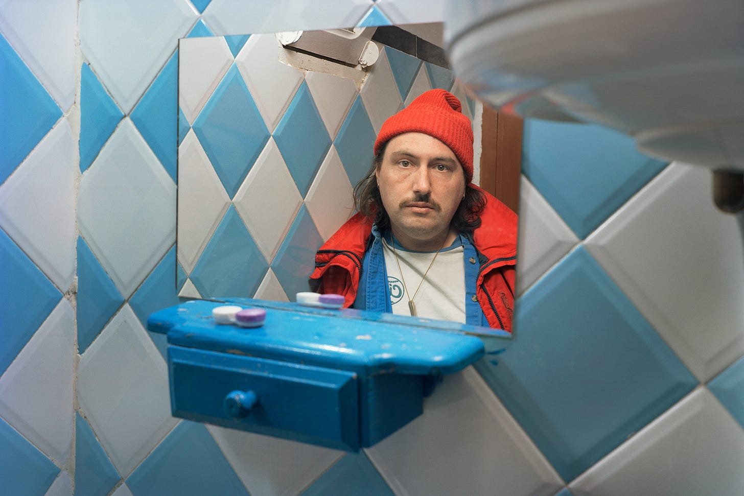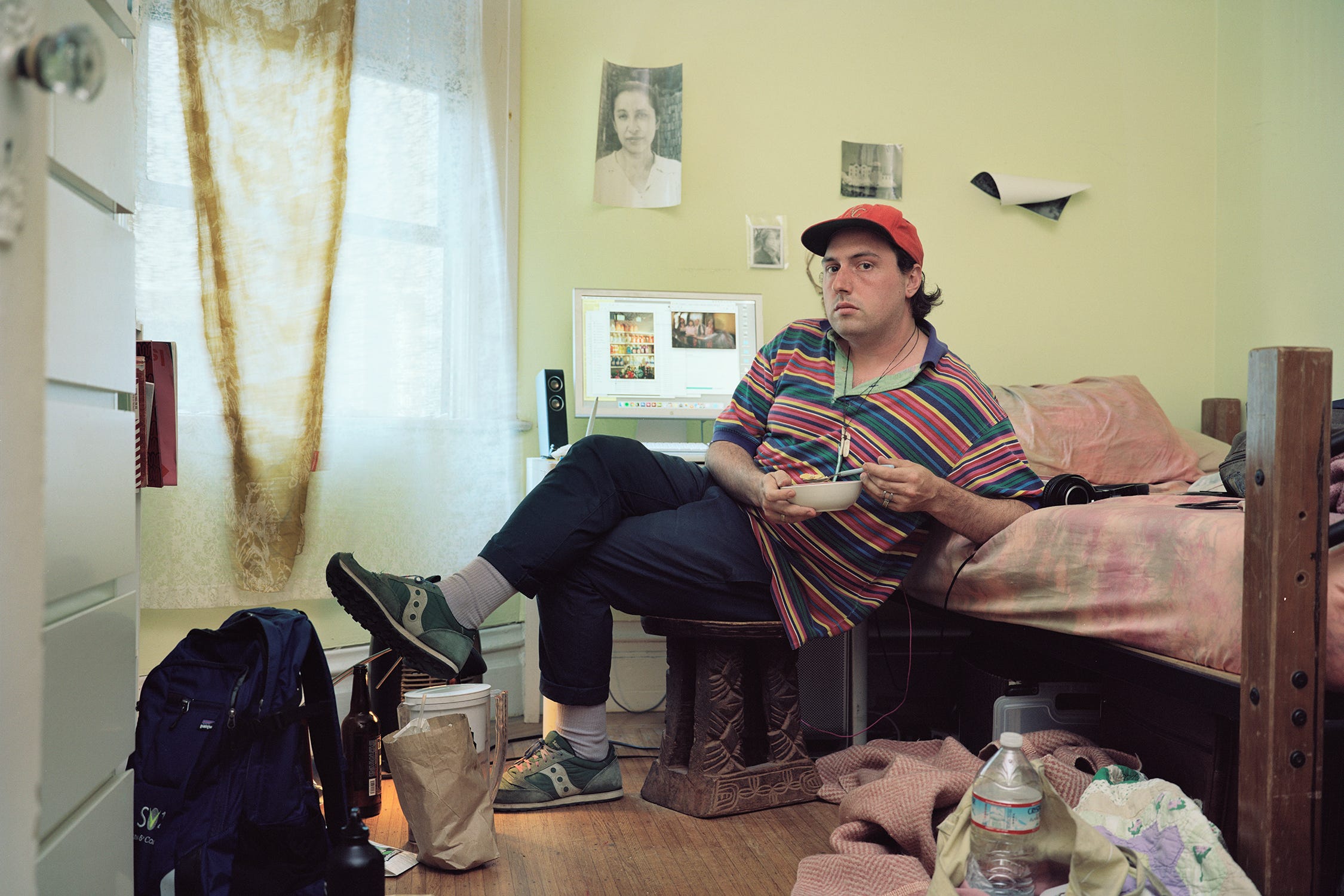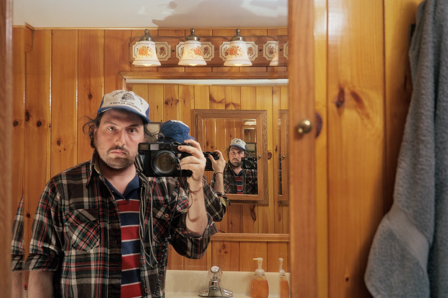 I’ve photographed myself for lots of different reasons, mark time, finish a roll of film, no one else is around, testing how to light a picture, something to do…The subtle details make memories flood back about what was happening at the time, how I was feeling, a favorite shirt. It’s good practice for photographing people, giving yourself the same feeling of the lens pointing at you, and gaining sympathy for how that feels to be looked at. Sometimes I forget to photograph myself, and try to challenge myself to do so. Cumulatively, these pictures start to be a record of my existence, the slightly performative person behind the camera for all of those other pictures.
